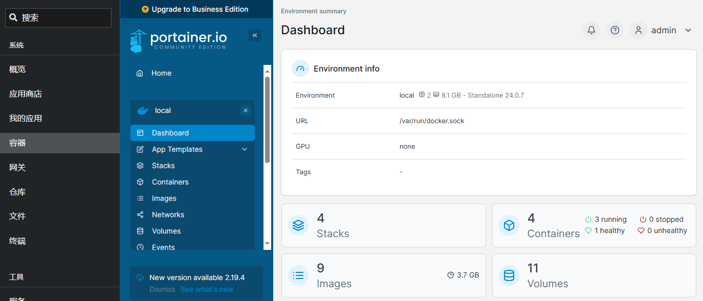 Websoft9 控制台的 网关 菜单即可进入 Portainer: