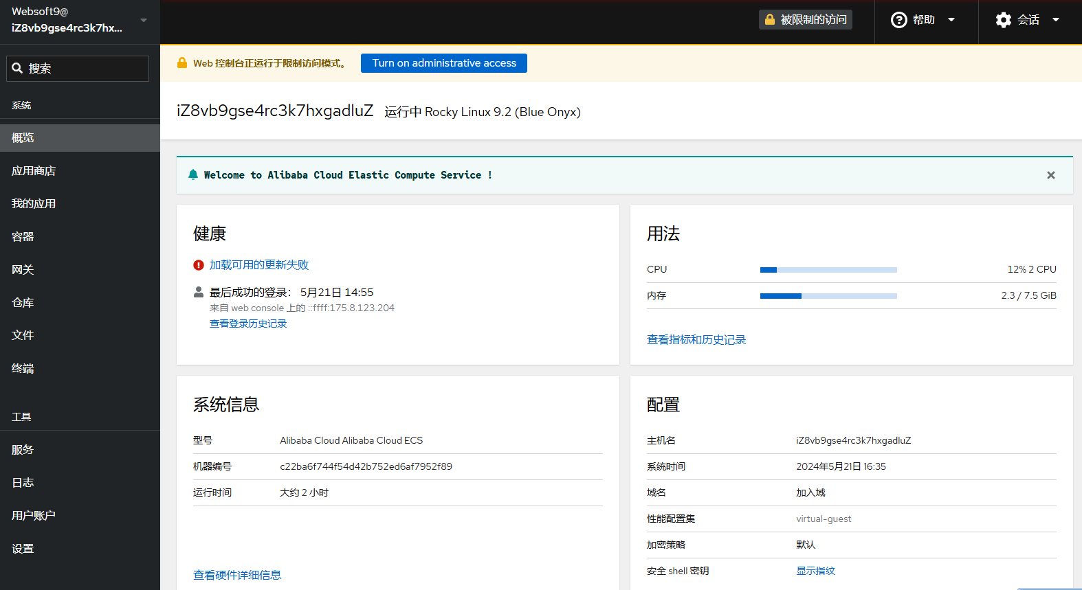 Websoft9 服务器后,接下来需要登录 Websoft9 控制台进行配置和管理。