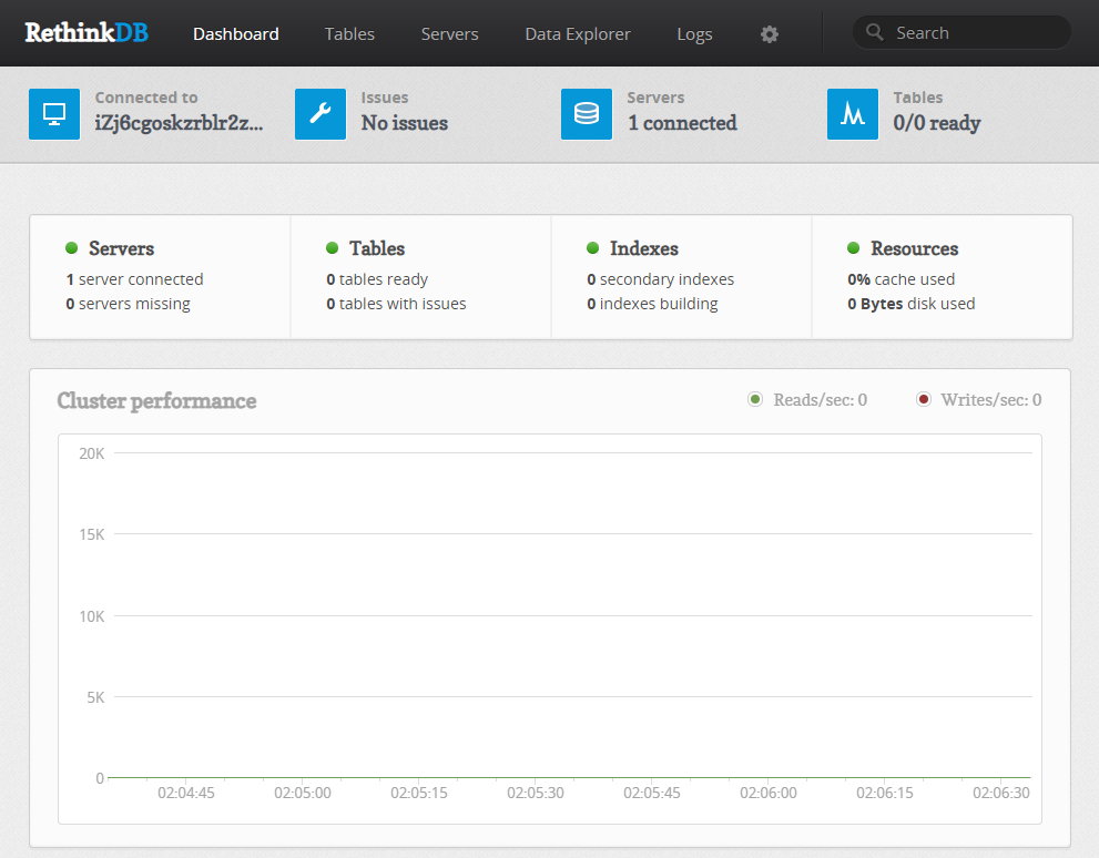 • Client Command Line: The client CLI is not provided, only the development package is available RethinkDB client drivers.
